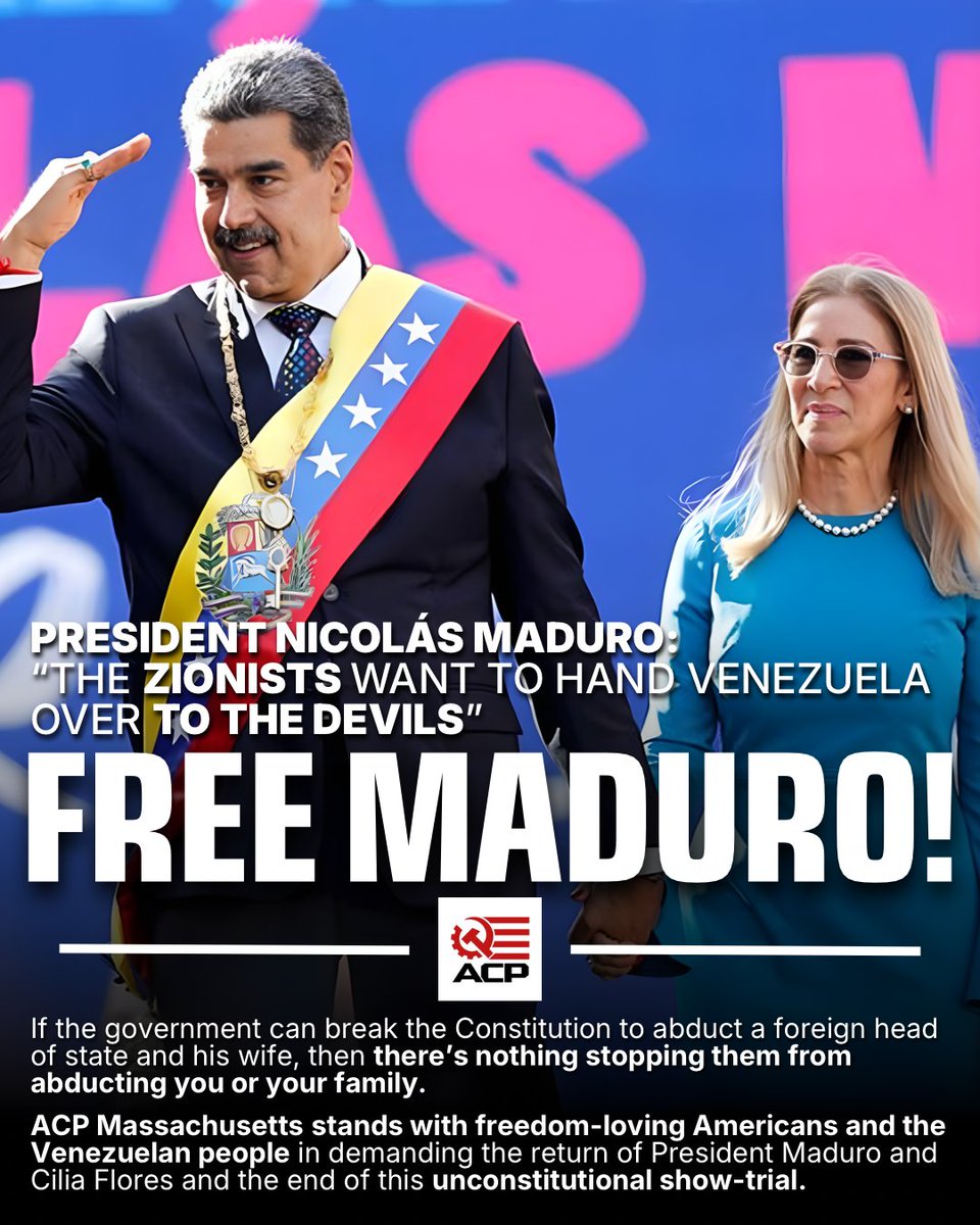 Today, March 26, President Nicolás Maduro and his wife Cilia Flores face a federal hearing in NYC. If the gov’t can break the Constitution to seize a foreign head of state and his wife, what can it do to your family? ACP Massachusetts stands for their return to Venezuela.